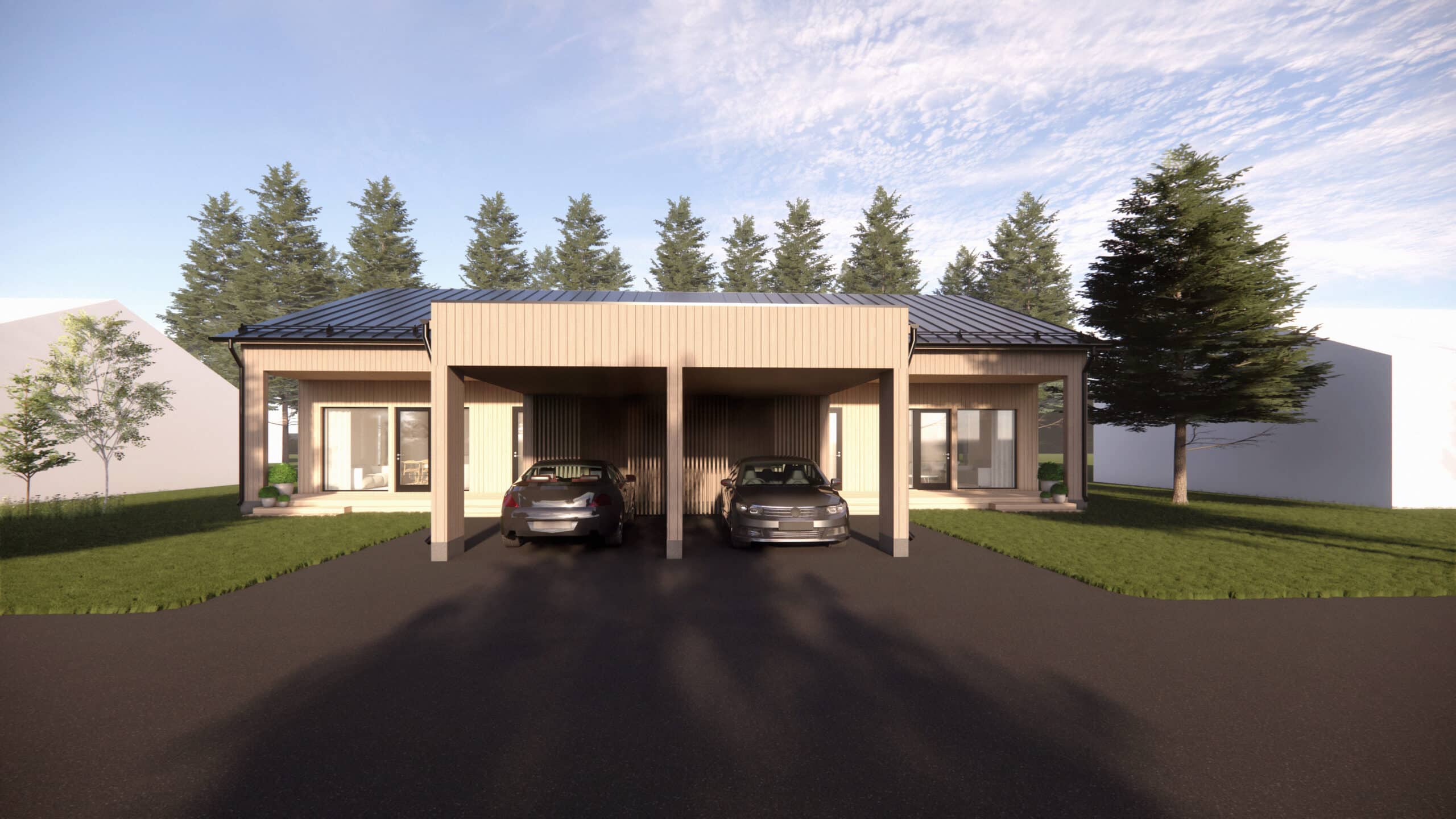 Koti luovutetaan täysin valmiina nurmikot kylvettynä ja parkkialue asfaltoituna. Arvioitu valmistuminen loppuvuodesta 2026.