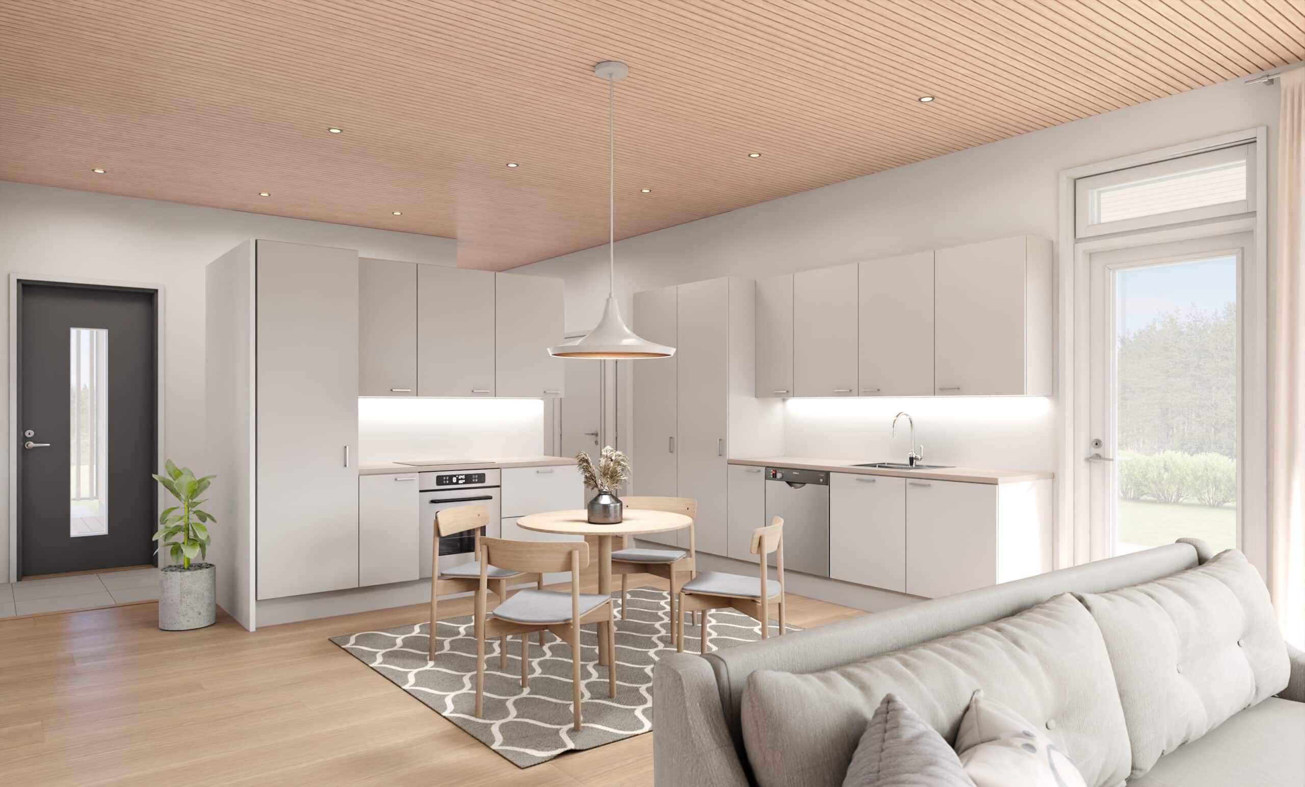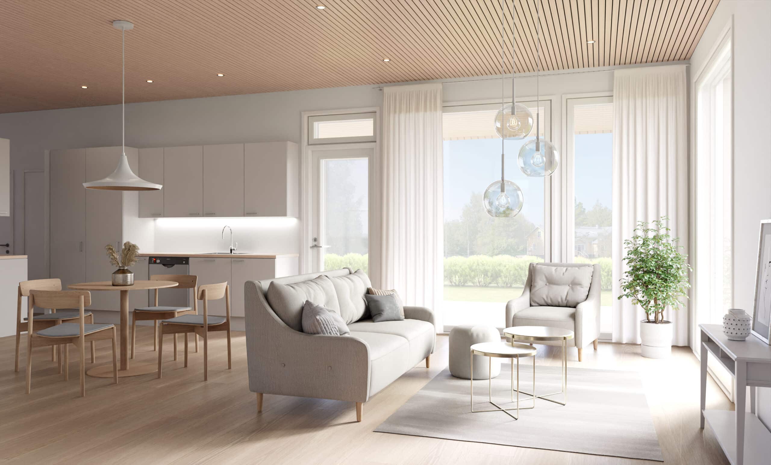 Kiintokalusteisiin, kodinkoneisiin sekä pintamateriaaleihin pääset vaikuttamaan itse. Ne ovat jo lähtötasoltaan laadukkaat vastaten nykypäivän vaatimuksia.